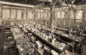 | Nei primi anni del '900 Rossi diventa uno dei più importanti produttori di pipe al mondo. La produzione sale vertiginosamente anche grazie ad una ingegnosa canalizzazione di un corso d'acqua che alimenta una centrale termoelettrica (installata da Rossi) che produce energia per tutte le macchine dello stabilimento. A cavallo tra le guerre mondiali la Rossi raggiunge il suo massimo fulgore; nel 1918 Leonida subentra al padre Ferdinando e nel 1936 (anno a cui risalgono le foto che corredano questo articolo) la fabbrica, con 860 operai a cottimo (95% dei quali donne) produce qualcosa come 50.000 pipe al giorno! |